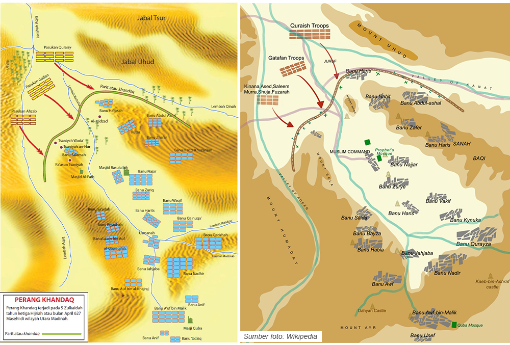 Taktiknya dengan menggali parit. Taktik ini atas saran Salman al-Farisi yang berasal dari Persia.